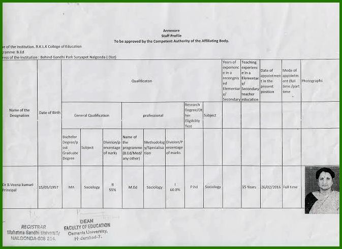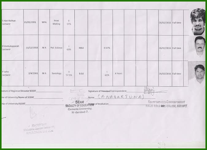 | B.Ed Staff Teaching ( In Take 100 ) |